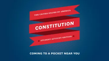 Last year, we celebrated the ability of three Stand Up For Speech plaintiffs to hand out Constitutions on their campuses without hindrance. This year, we are marking the day with our own FIRE pocket Constitution, specifically designed for student activists. In it, you will find activism tips, inspirational quotes, and testimonials by other students on the importance of defending free expression on campus. For convenience when engaging with campus security or administrators, the First Amendment is reproduced in large type on page 43. If you would like multiple copies for tabling purposes, you can request them on our website. Please be patient, however, as our first print run is almost depleted and we have to order more.