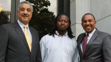 Photo: Taylor Bell and his attorneys, Wilbur Colom, left, and Scott Colom. Credit: Frank LoMonte, Student Press Law Center.