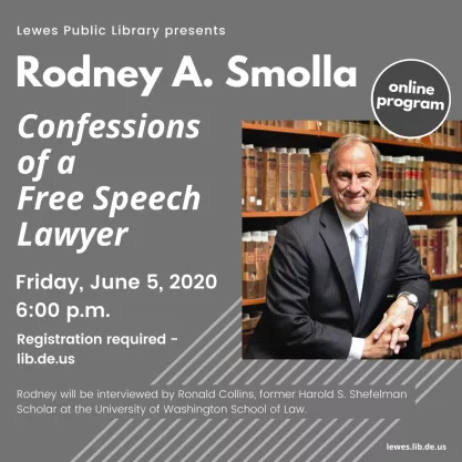 On June 5 at 6 p.m. ET, Rodney A. Smolla will be hosting a talk on Zoom titled "Confessions of a Free Speech Lawyer" through the Lewes Public Library.