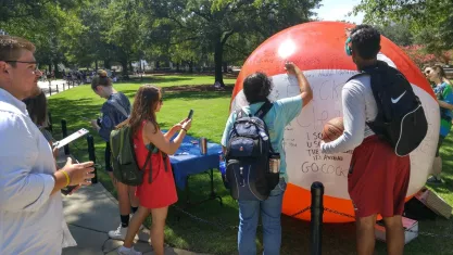 This semester I have continued to fight for free speech on campus and educate my fellow students about the importance of free speech. Our Young Americans for Liberty chapter at USC celebrated Constitution Day by having a free speech ball event. We blew up an 8 ft. beach ball and encouraged students to write anything they liked on it. Students loved this and almost everyone who walked by our display stopped to sign the ball and to talk to us about free speech. Surprisingly, many students had no idea about the authoritarian speech code policies on campus including in our own Carolinian Creed and the restrictive “free speech zones” on campus. Students were appalled by this and almost everyone signed our petition to let the University know they believe the university should uphold the “Chicago Principles” of free thought and expression. Our event was a great success and we look forward to continuing the fight for free speech at the University of South Carolina.