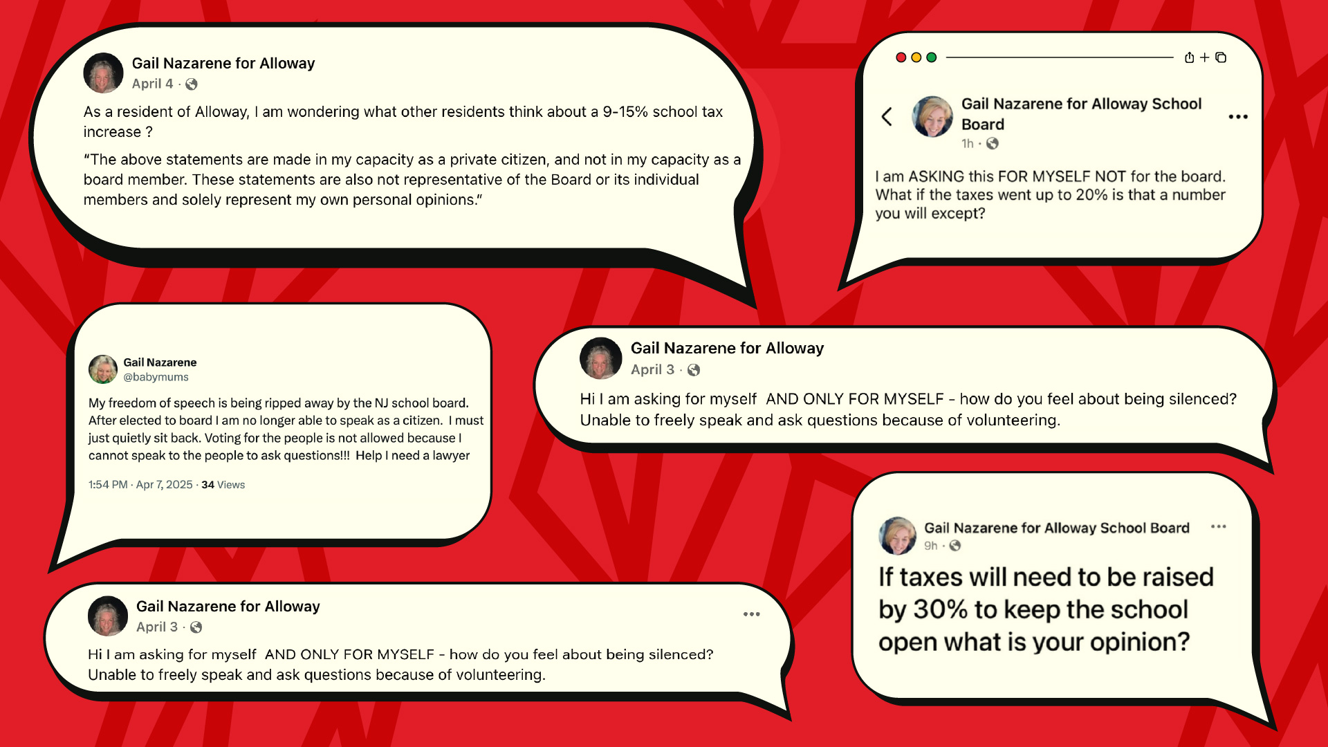 ALLOWAY TOWNSHIP, N.J., Nov. 20, 2025 — A local school board member’s Facebook post to community members about a tax hike should have started a conversation — instead, it led to censorship.