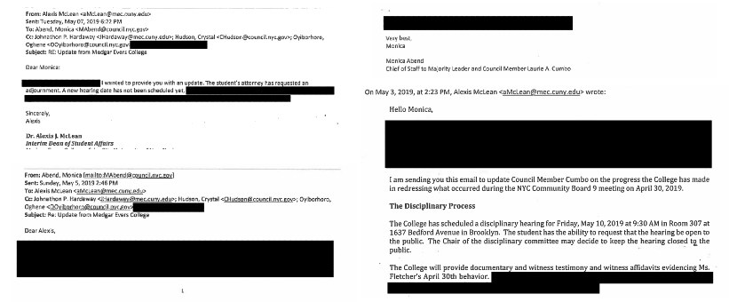 At Medgar Evers College, selective redactions cover up administrators’ interactions with City Council member over a student critic
