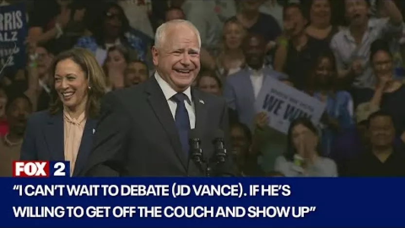 “And I got to tell you, I can’t wait to debate the guy — that is, if he’s willing to get off the couch and show up,” Walz told the crowd. “See what I did there?”