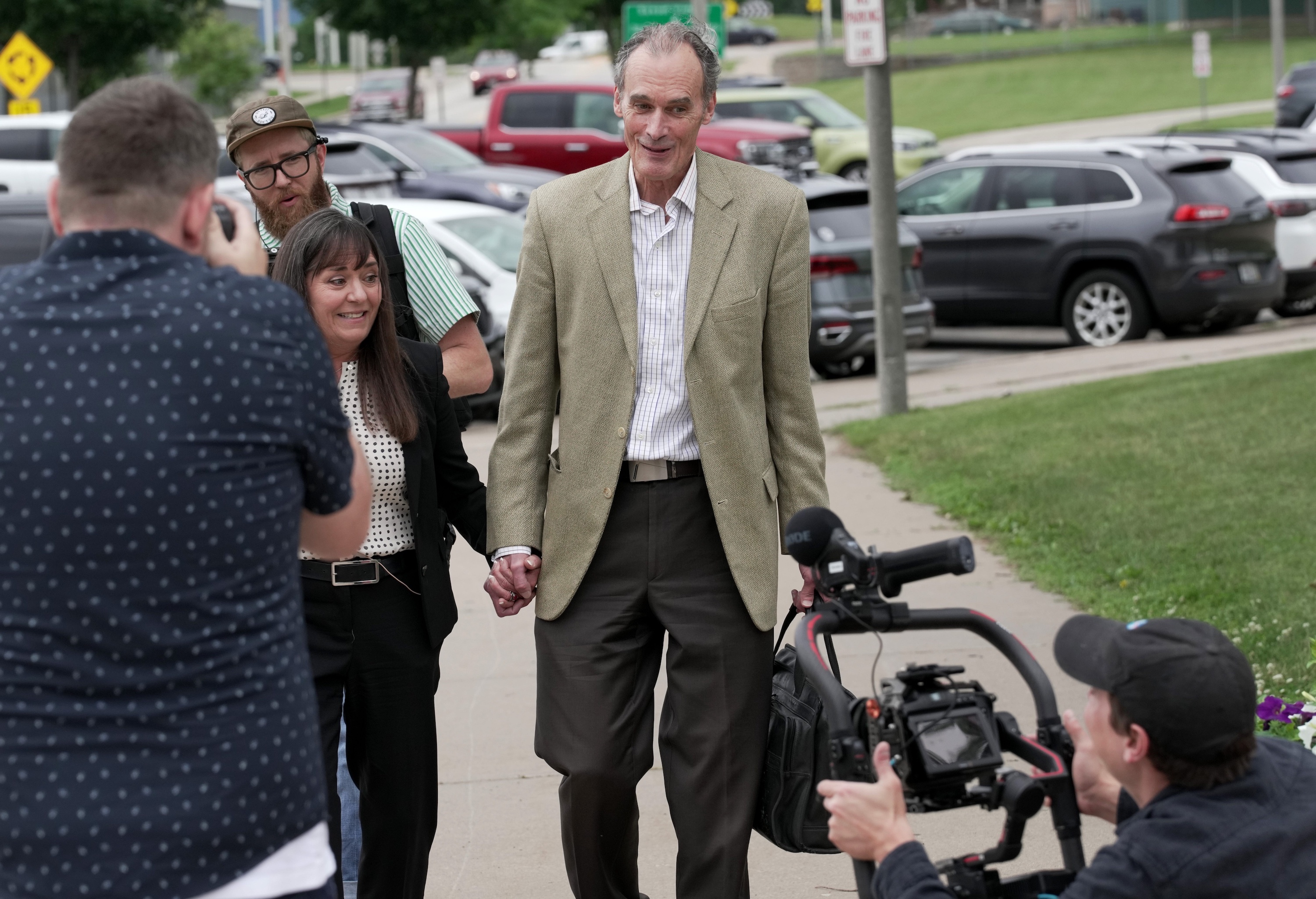Former UW-La Crosse Chancellor Joe Gow and wife Carmen Wilson attend his disciplinary hearing on June 19, 2024.